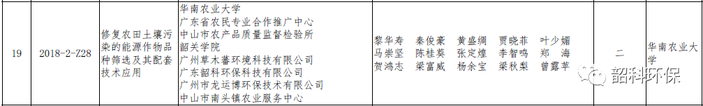 我司參與“修復(fù)農(nóng)田土壤污染的能源作物品種篩選及其配套技術(shù)應(yīng)用項(xiàng)目”獲得2018年度廣東省農(nóng)業(yè)技術(shù)推廣二等獎(jiǎng)
